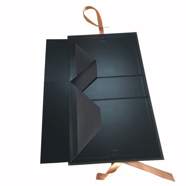 Custom Printed Black Paper Cardboard Folding Magnetic Cosmetic Packaging Boxes With Ribbon